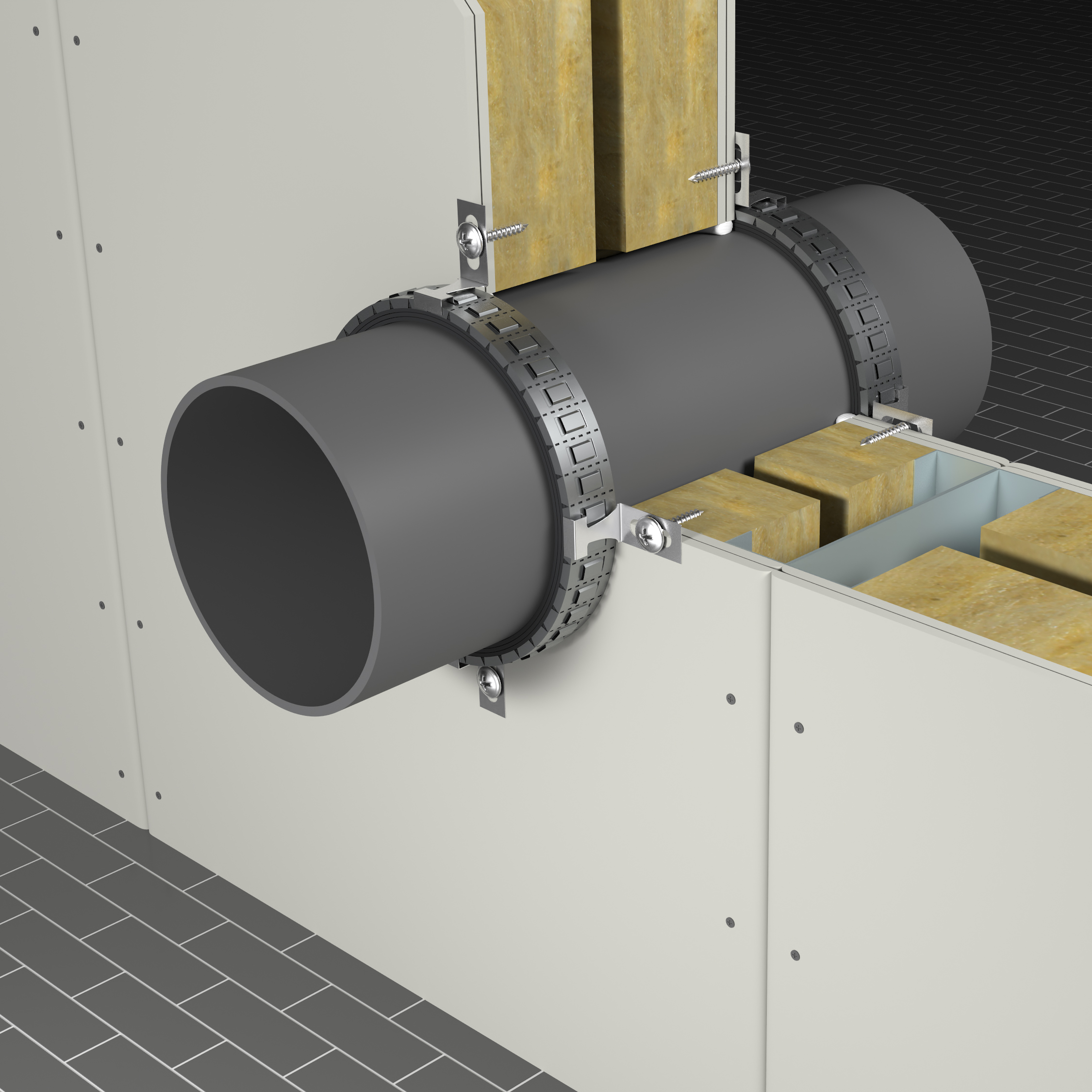 A bővíthető INTU FR COLLAR L SLIM tűzvédelmi manzsetta egy 30 mm magas, univerzális termék, amely rozsdamentes acélból készült külső burkolatból és grafitból előállított, hőre duzzadó, öntapadó betétből áll. Az acél peremes ház rögzítőkonzolokkal (szegmensekkel) van felszerelve. A kívánt peremátmérő elérése érdekében a szegmensek könnyen szétválaszthatók.